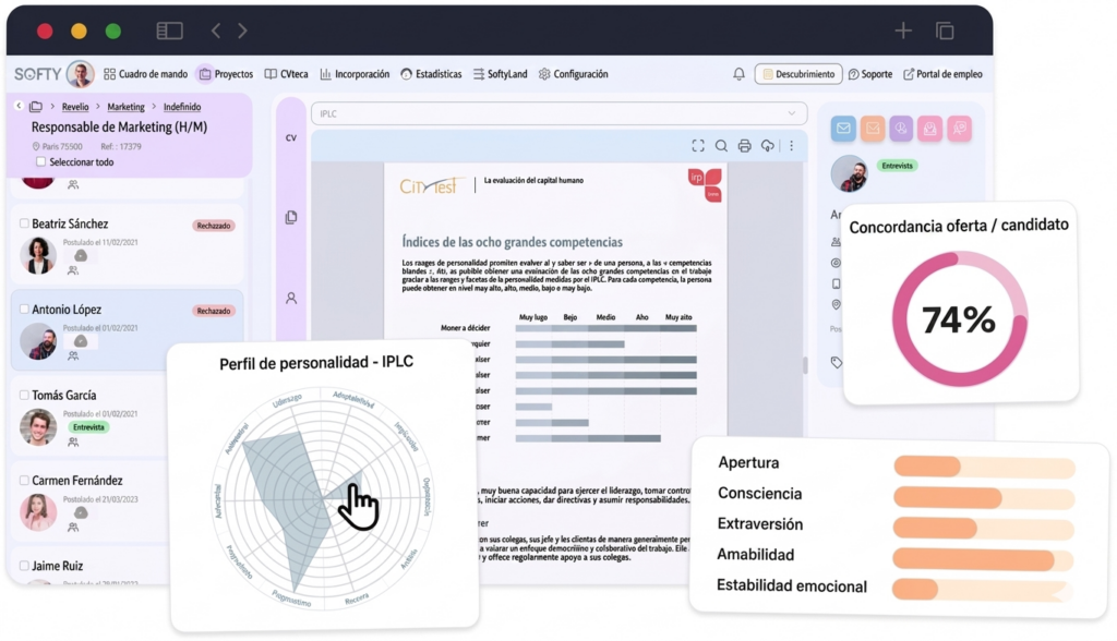 En concreto, la herramienta permite: centralizar CV y cartas de presentación, seguir cada fase del proceso (criba, entrevista, validación…), automatizar tareas repetitivas, colaborar con los equipos internos y disponer de un panel de seguimiento claro en todo momento.