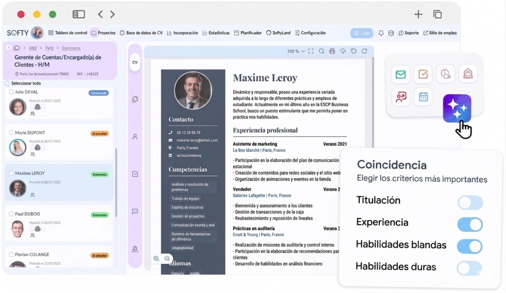 Un software de reclutamiento, en concreto, ¿qué es? Es una herramienta potente que utilizan los reclutadores para filtrar candidaturas e identificar a los candidatos más cualificados. Estos sistemas analizan los CV en busca de palabras clave específicas y determinan si tu experiencia y tus habilidades encajan con el puesto ofertado. Si tu CV no está bien optimizado, puede que nunca supere esta primera etapa crucial.